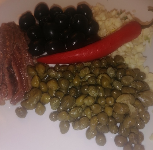 1 malutka puszka filecików anchois (30g ryby po odcieku)