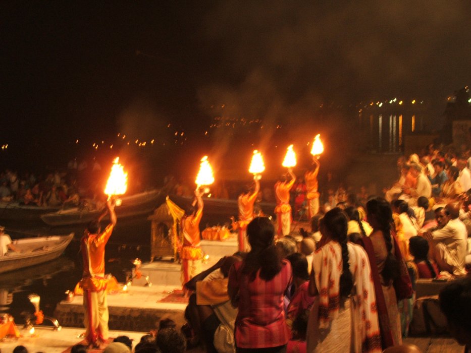 Hinduistyczny obrzęd religijny podczas którego, wierni oddają hołd bogu Shivie. Na scenie kilku młodych braminów, odzianych w jaskrawe pomarańczowe szaty wymachuje potężnymi świecznikami i naczyniami z kadzidłem. Towarzyszy temu rytmiczna, monotonna muzyka, grana na bębnie damaru oraz czymś w rodzaju akordeonu. Na rzece pojawia się cała armada skleconych z liści łódeczek – lampionów.