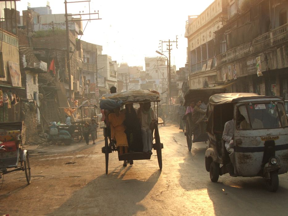 W ciągu pół minuty, ze spokojnego miejsca przenieść się można w sam środek ulicznego rozgrzanego tygla. Każdy krok, każdy ruch musi być wtedy pod kontrolą. Uliczna rzeka pełna Hindusów, riksz i innych pojazdów przemyka wartkim strumieniem. Trzeba w tym całym galimatiasie znaleźć małą wyrwę, wskoczyć w nią i konsekwentnie płynąć do przodu. W osłupienie przyprawiają kolejne niezidentyfikowane zjawiska w postaci świadczącego usługi dla przechodniów czyściciela uszu, rozłożonych na kawałku szmaty instrumentów medycznych ulicznego dentysty oraz notariusza przyjmującego klientów na chodniku w pozycji kwiatu lotosu.