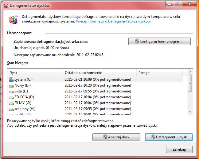 Każdy system ma wbudowany specjalny program, który uporządkuje nasze pliki na dysku, czyli właśnie dokona defragmentacji.