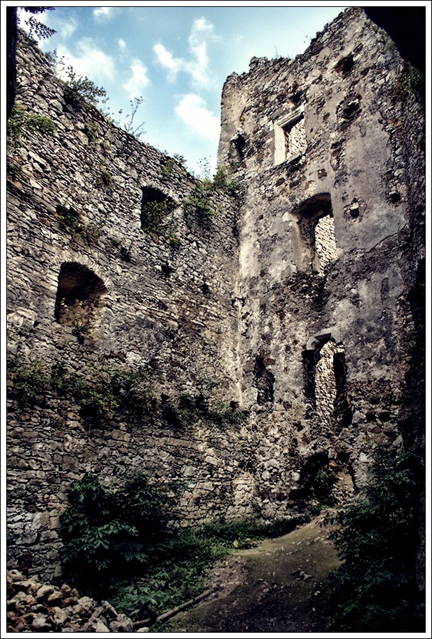 Niestety zamek jest w tej chwili zamknięty i nie można oglądać go w środku (oczywiście nie dla nas ;) ).  A szkoda, bo pozostałe ruiny sa imponujące. Godne uwagi sa dobrze zachowane otwory strzelnicze i przepiękne gotyckie okna.