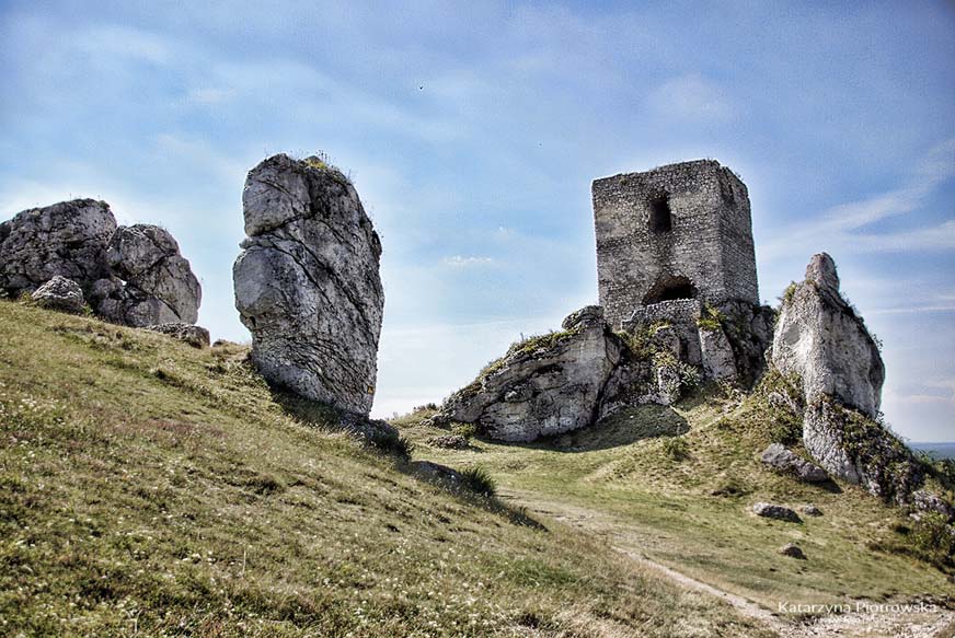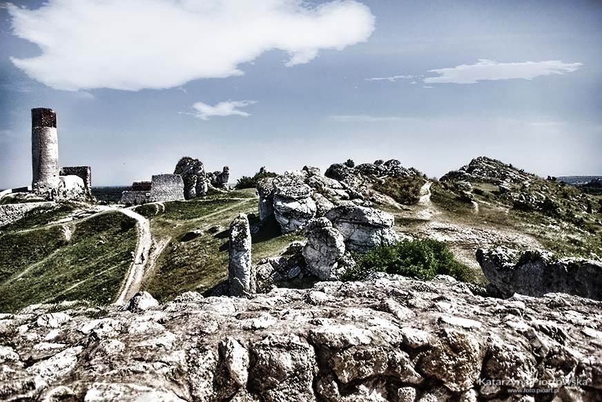 I pomimo, że są to tylko ruiny, a może właśnie dlatego, warto odwiedzić to miejsce. Piękne, malownicze, wręcz baśniowe. A widoki jakie roztaczają się z zamkowego wzgórza są przepiękne. Piękny las, przyozdobiony wapiennymi skałkami, a gdzieś w oddali Jasna Góra … to wszystko sprawia, że miejsce to zapada w pamięci. Wapienne ostańce pozwalają nam odpocząć w swoim cieniu, zadumać się, pomarzyć. Szczególnie po lekturze książki Outlander Diany Gabaldon, miejsce to wydaje się magiczne. W książce, główna bohaterka Claire , dotykając takich kamieni rozpoczyna swoją wielką podróż w czasie. Podczas tej podróży poznaje miłość swojego życia Jamiego. Romans, który rozgrywa się na tle wielkich wydarzeń historycznych trzeba przeczytać od początku do końca w jedną noc. Po prostu nie ma możliwości, aby się oderwać. I po takiej lekturze wycieczka do ruin w Olsztynie…. i wyobraźnia płata figle.