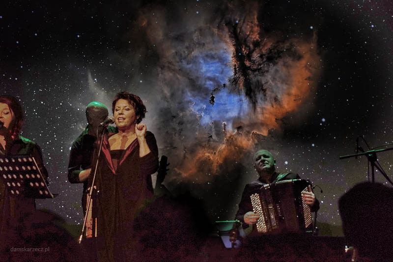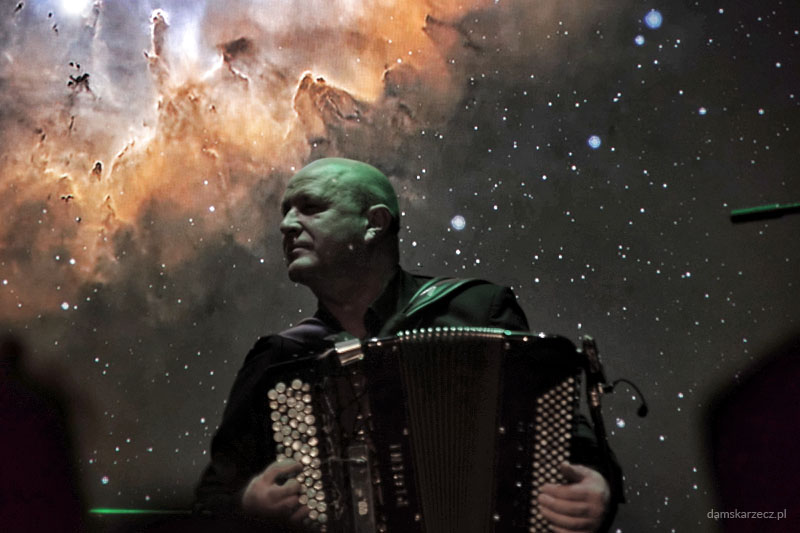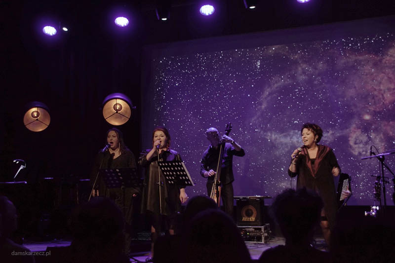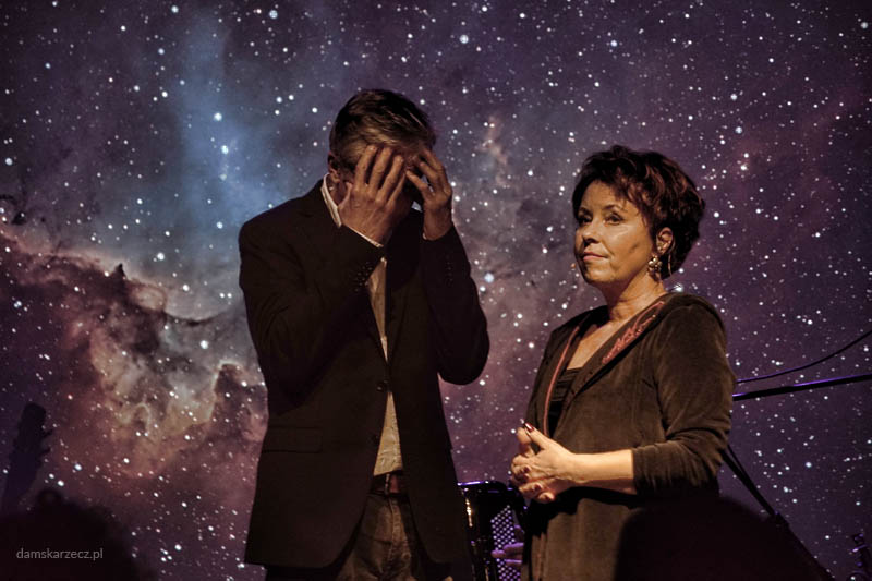 Muzyka była gęsta od emocji, elegancka, a zarazem nowoczesna. Fortepian Łyszkiewicza w dialogu z kontrabasem Maxa Kowalskiego i precyzyjną perkusją Pawła Dyyaka tworzył fundament, na którym działy się rzeczy magiczne. Szczególne ukłony należą się Olegowi Dyyakowi, który na akordeonie i niezliczonych instrumentach perkusyjnych wyczarowywał dźwięki niemal nieziemskie. To nie był zwykły akompaniament – to był żywy, oddychający organizm dźwiękowy, dopełniony przez świetne głosy chóru (Kinga Kutrzuba i Natalia Szymska).