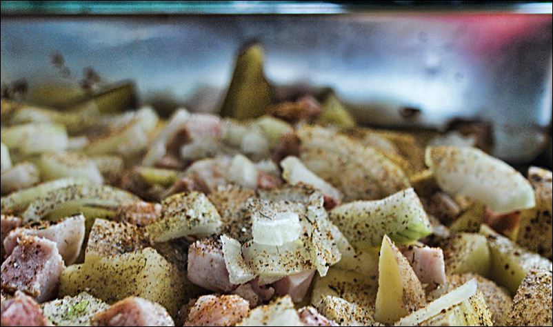 Zapiekane ziemniaki z boczkiem i cebulą